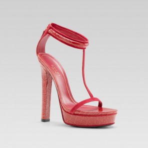 - red suede and crocodile - buckle closure - leather sole - 4.3" heel with a 1" platform