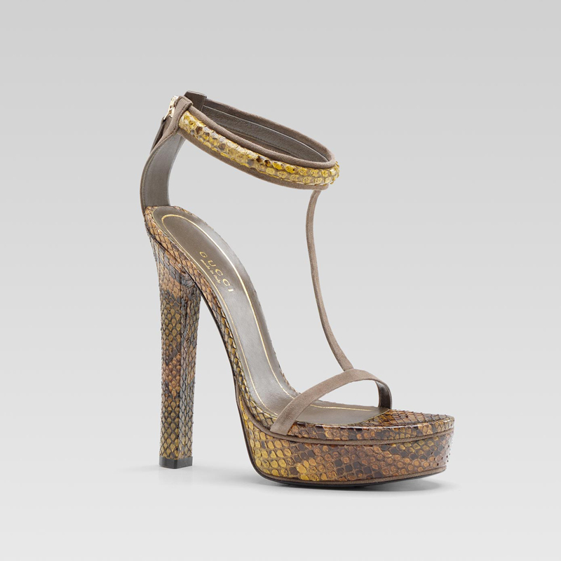 - fango color suede and mustard color python - buckle closure - leather sole - 4.3" heel with a 1" platform