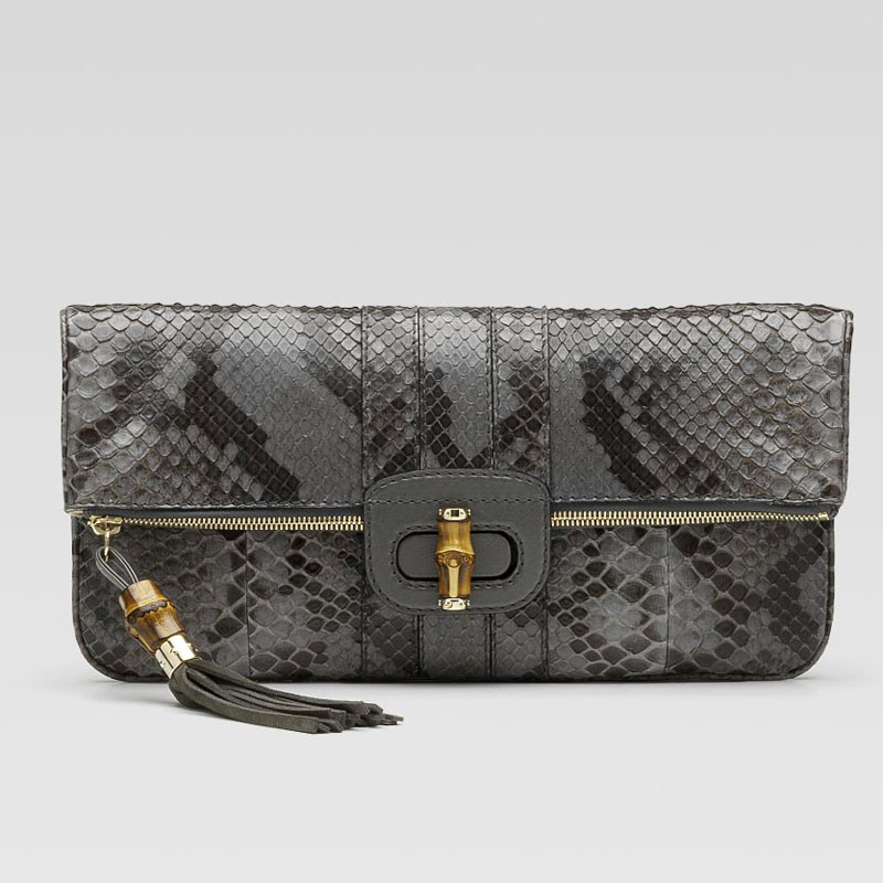 -grey python with grey leather and grey suede trim-gold hardware-zip and bamboo turn-lock closure-inside pocketProduct ID: 223975 ECT8G 1200