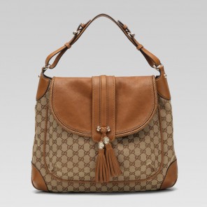 'marrakech' medium shoulder flap bag with woven leather trim and tassels with metal G details.