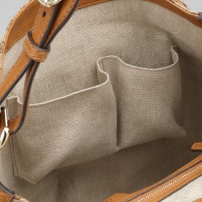 - single adjustable strap with horsebit ring buckle and 16 cm drop