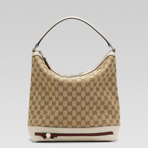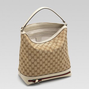 - beige/ebony GG fabric with off-white leather trim and green/red/green signature web