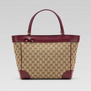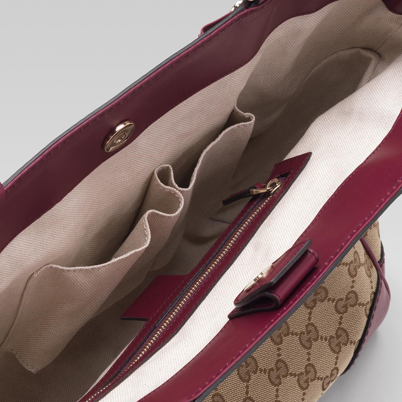 - beige/ebony GG fabric with cherry color leather trim