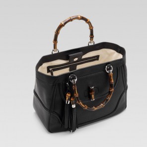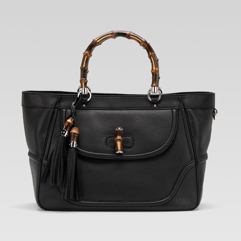 'new bamboo' medium tote with tassels and bamboo detail.