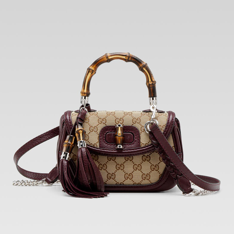 'new bamboo' small top handle bag with tassels and bamboo detail.