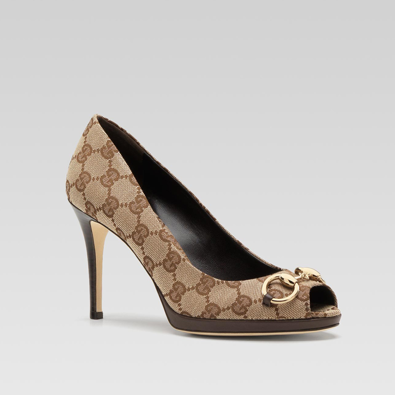 'new hollywood' mid heel open-toe platform pump with horsebit detail.