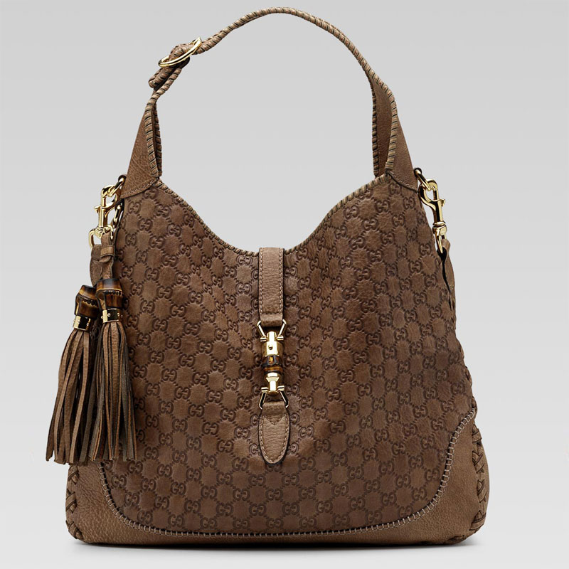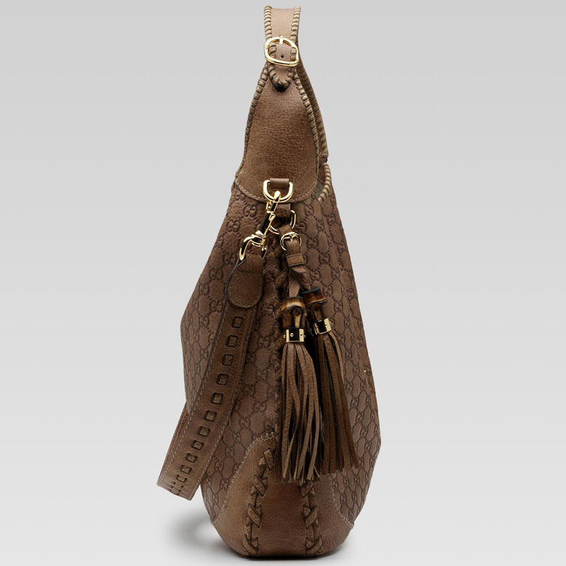 'new jackie' large shoulder bag with hand stitching, tassels, and bamboo detail.