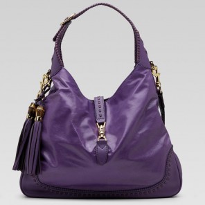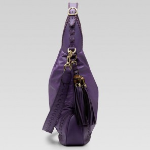 'new jackie' large shoulder bag with hand stitching, tassels, and bamboo detail.
