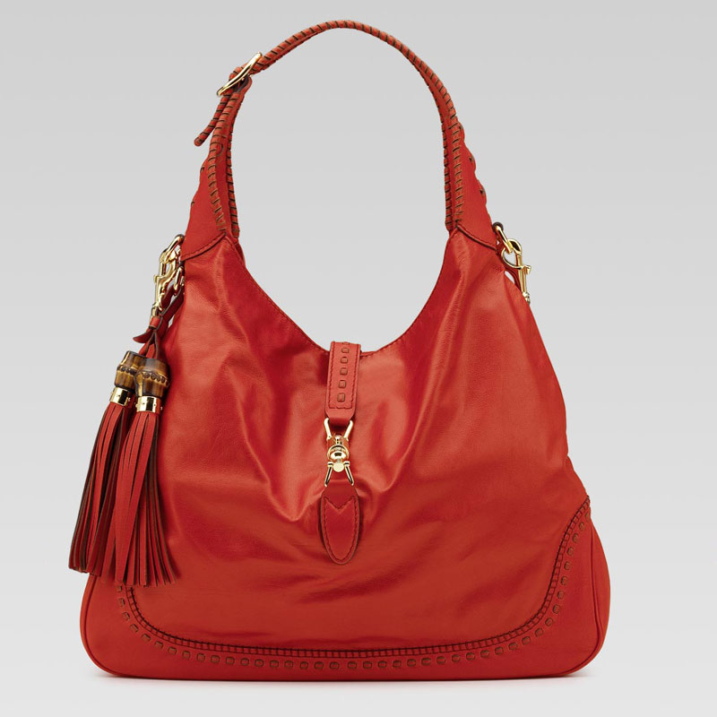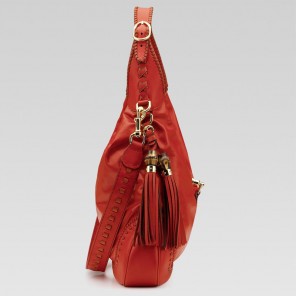 'new jackie' large shoulder bag with hand stitching, tassels, and bamboo detail.