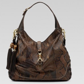 'new jackie' large shoulder bag with hand stitching, tassels, and bamboo detail.