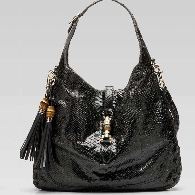 'new jackie' large shoulder bag with hand stitching, tassels, and bamboo detail.