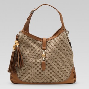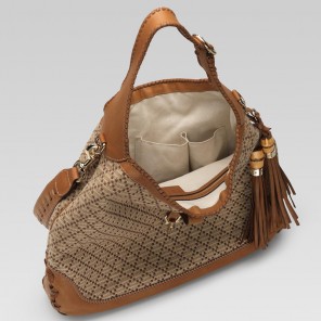 'new jackie' large shoulder bag with hand stitching, tassels, and bamboo detail.