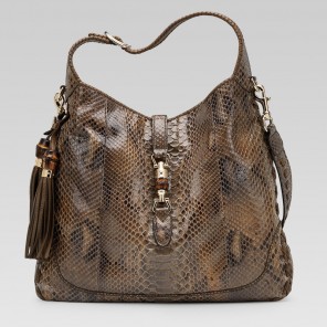 'new jackie' large shoulder bag with hand stitching, tassels, and bamboo detail.