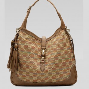 -multi-color GG straw with light brown leather trim-gold hardware