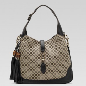 'new jackie' medium shoulder bag with hand stitching,tassels,and bamboo detail.