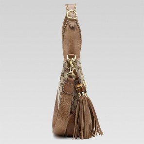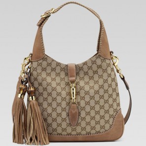 'new jackie' medium shoulder bag with hand stitching, tassels, and bamboo detail.