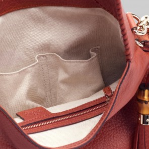 'new jackie' medium shoulder bag with hand stitching, tassels, and bamboo detail.