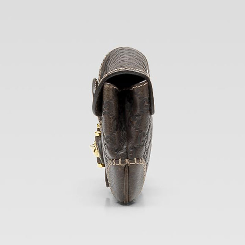 -dark brown guccissima leather with dark brown leather trim-brass hardware-flap closure