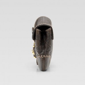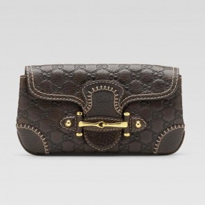 'new pelham'evening bag with horsebit detail, embossed gucci script logo, and studs.