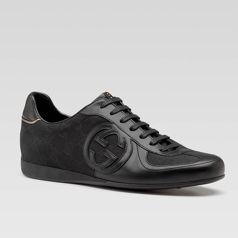 - black GG fabric with black leather and metallic grey leather trim- rubber sole