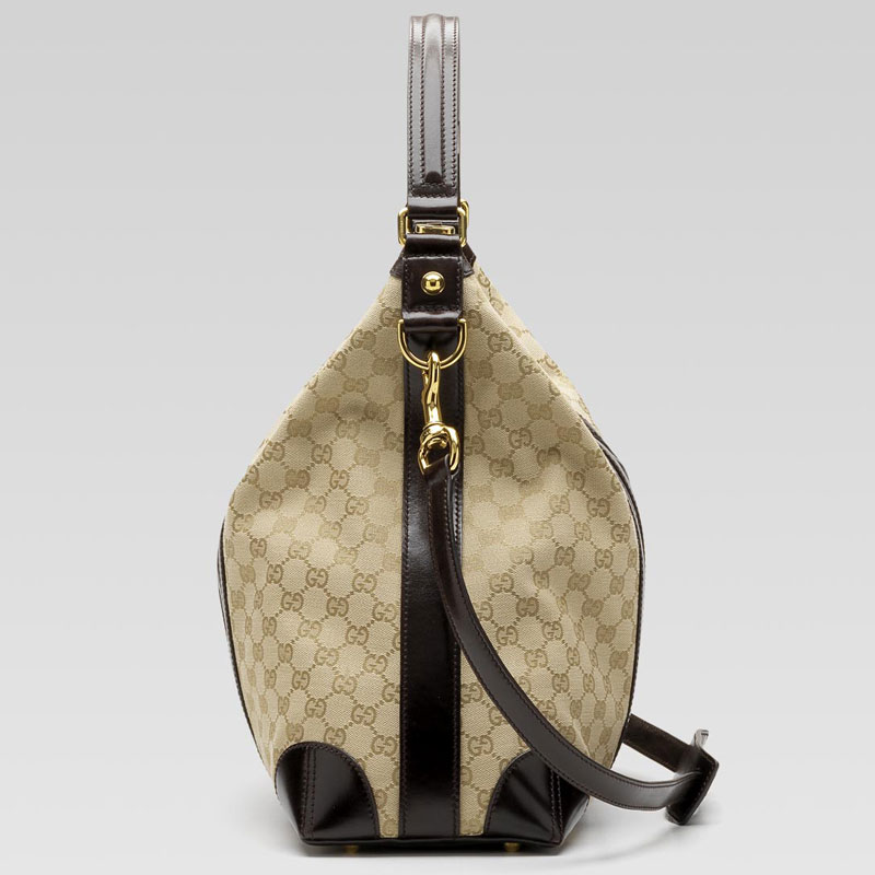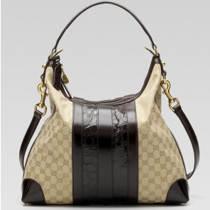 -sand GG fabric with dark brown leather and dark brown crocodile trim