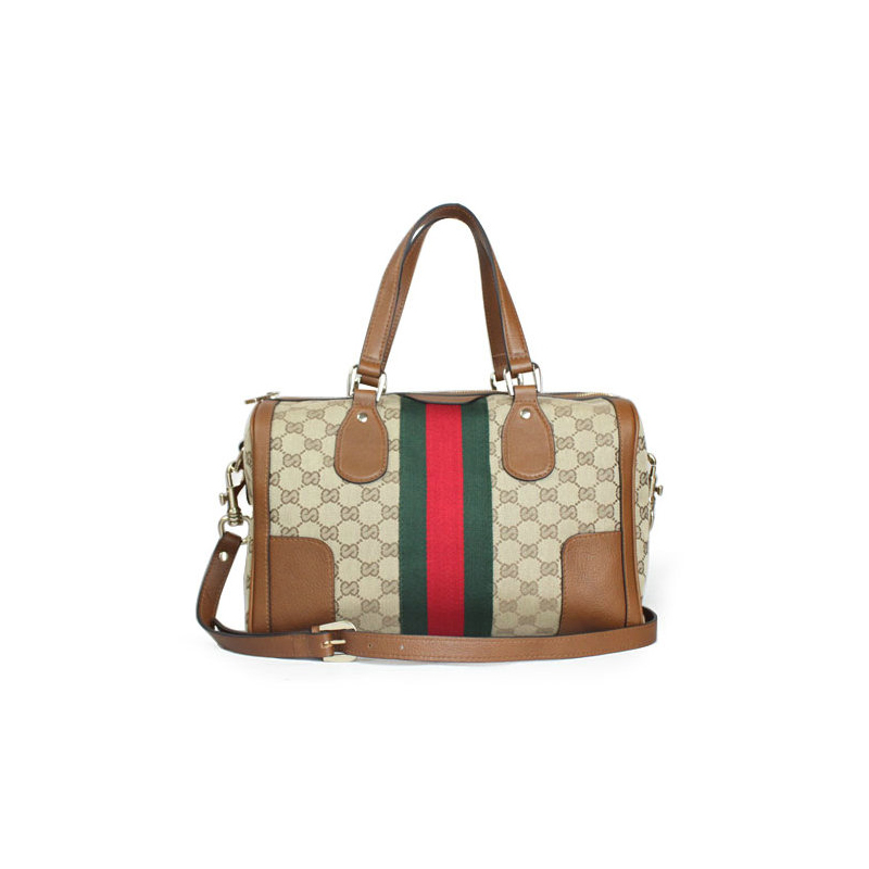 - complimentary personalization. this item can be personalized with your initials to create a special heirloom. this gucci service is optional and free of charge each bag goes through an innovative washing and drying process to give it an aged one-of-a-kind look. this process creates color gradients that enhance the exclusivity of our products and uniqueness of each piece beige/ebony pied-de-poule fabric with brown leather trim and green/red/green web