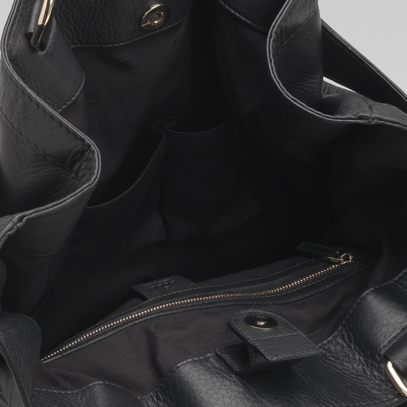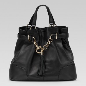 'sienna' large tote with horsebit hook, metal chain, and tassel.