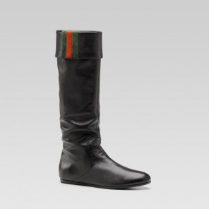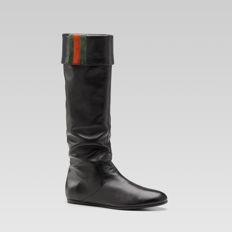 - black leather with green/red/green suede web - rubber sole