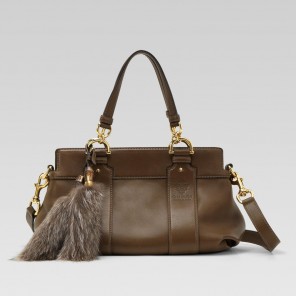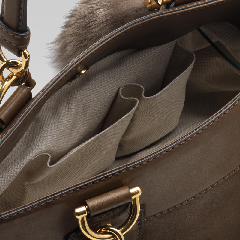 'smilla' medium top handle bag with removable fur tails and bamboo details.