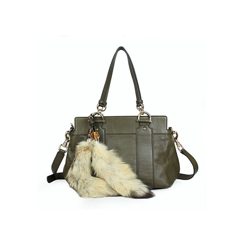 'smilla' medium top handle bag with removable fur tails and bamboo details.