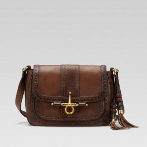 'snaffle bit' medium shoulder bag with hand stitching, studs application, and tassels with leather monkey fist details.