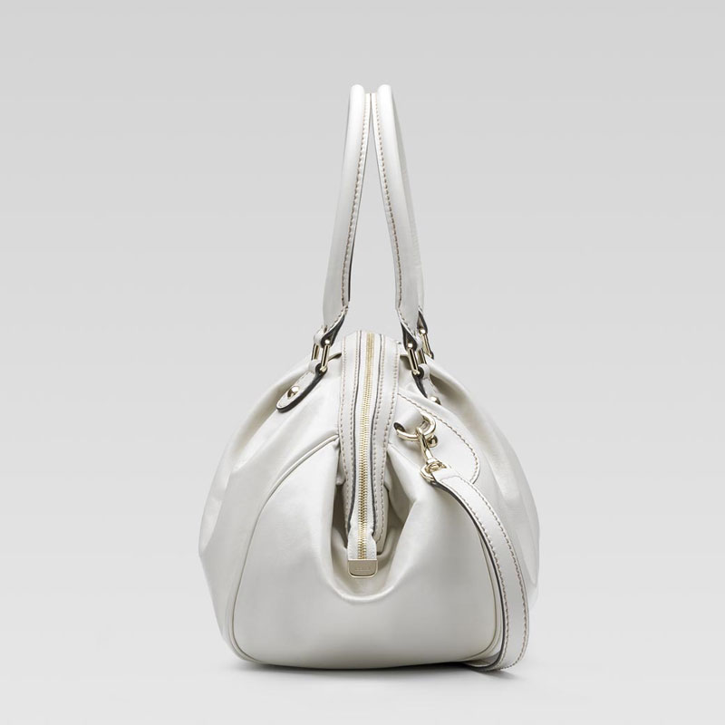 'sukey' medium boston bag with pleat detail, detachable interlocking G charm, and studs.