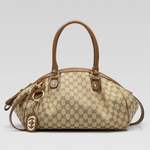 'sukey' medium boston bag with pleat detail, detachable interlocking G charm, and studs.