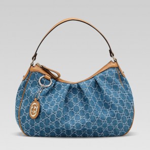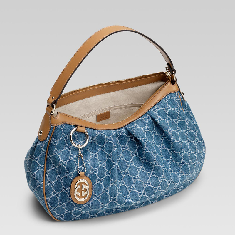- denim GG fabric with camel brown leather trim