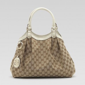 'sukey' medium tote with pleat detail, detachable interlocking G charm, and studs.