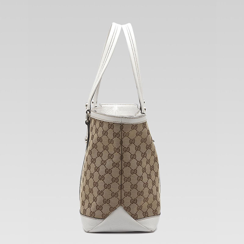 -beige/ebony GG fabric with sand/grey/white signature web and white leather trim