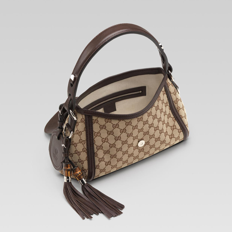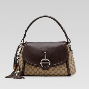 'techno horsebit' medium shoulder flap bag with horsebit detail and tassels with bamboo detail.