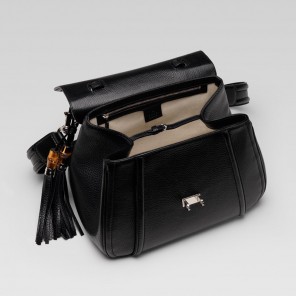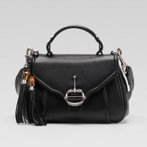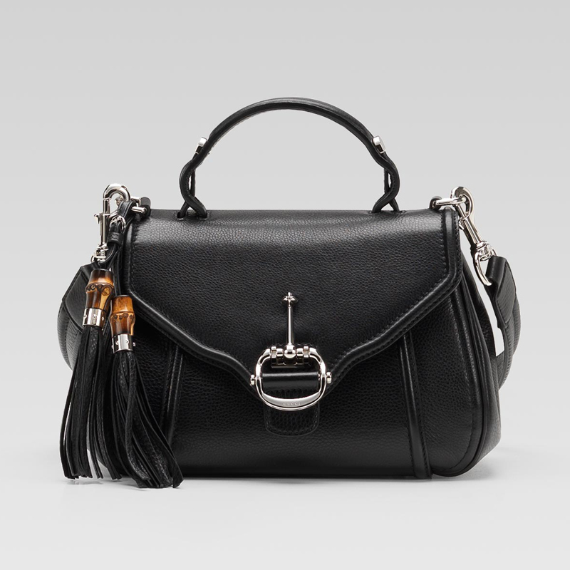 'techno horsebit' medium top handle bag with horsebit detail and tassels with bamboo detail.