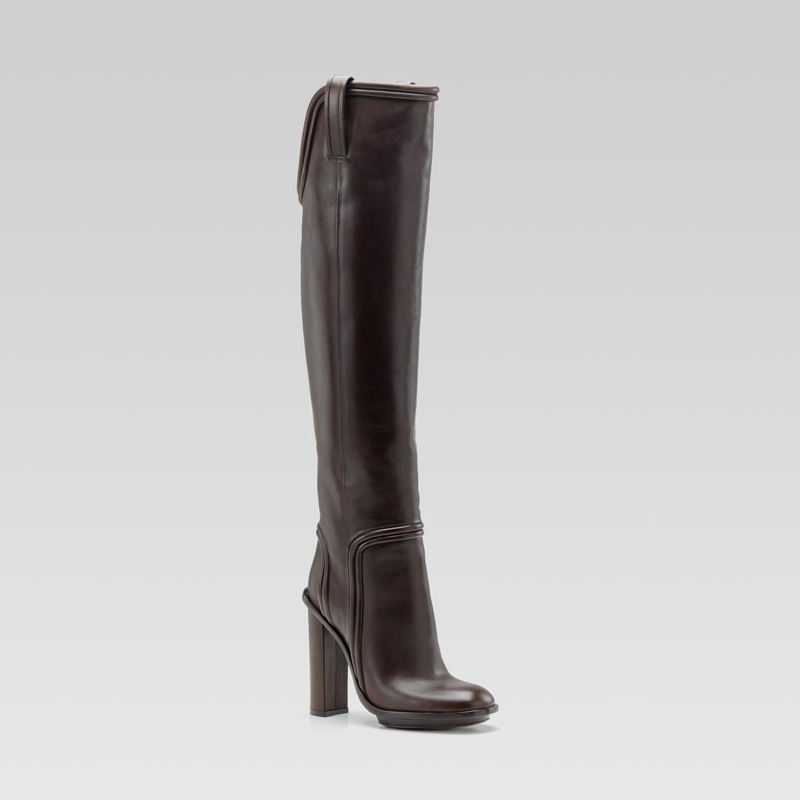 - brown leather - leather sole - 4.3" heel with a 0.4" platform