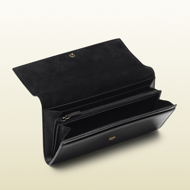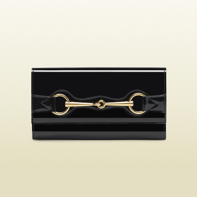 2013 Gucci black patent leather continental wallet with horsebit detail