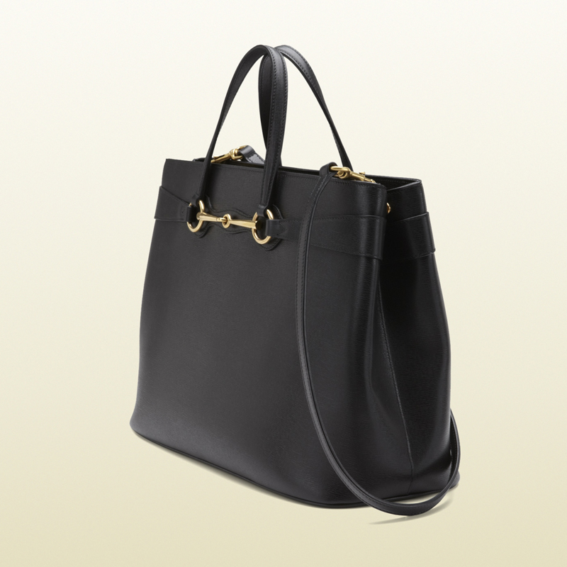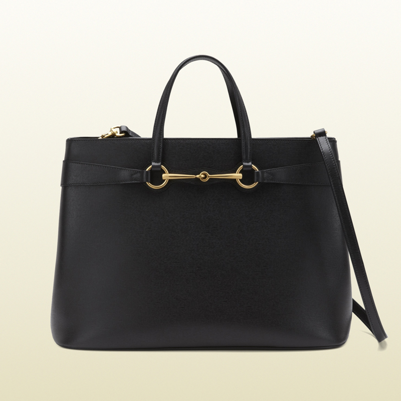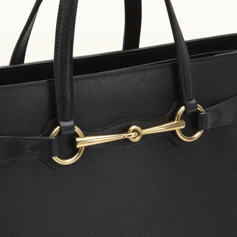 Straight from the archives, the iconic horsebit decorates our beautiful leather top handle tote. Simple, understated yet undeniably elegant, it's the perfect working tote for the fashion savvy business woman.