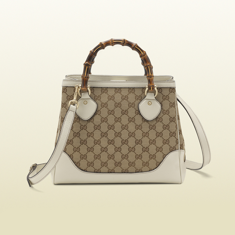 2013 Gucci diana original GG canvas top handle bamboo tote