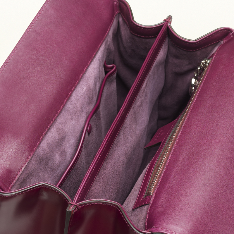 Taking its cue from fifties sophistication, the Lady Lock top handle bag boasts a beautiful archival closure and shape. A working bag with a feminine attitude.