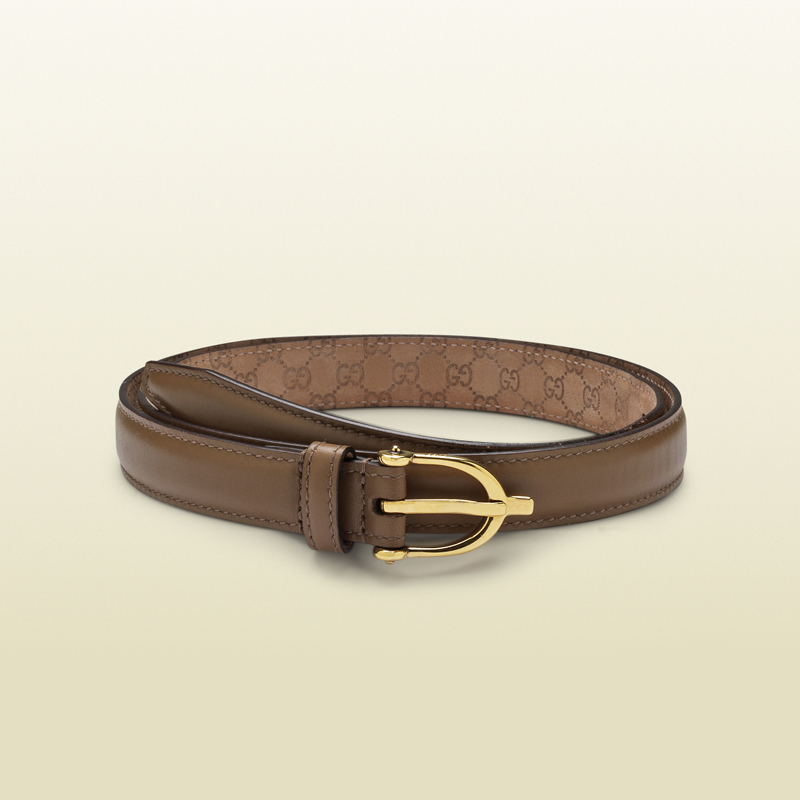 2013 Gucci maple brown leather skinny belt with spur buckle