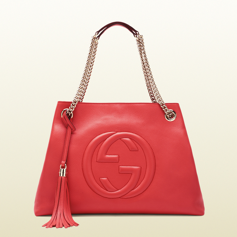 - double chain shoulder straps with leather shoulder pad 7" drop