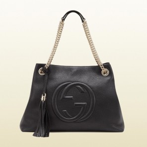 - double chain shoulder straps with leather shoulder pad 7" drop
