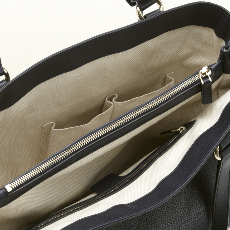 A business savvy working tote with a detachable shoulder strap. Soft, versatile and cool in timeless black leather.