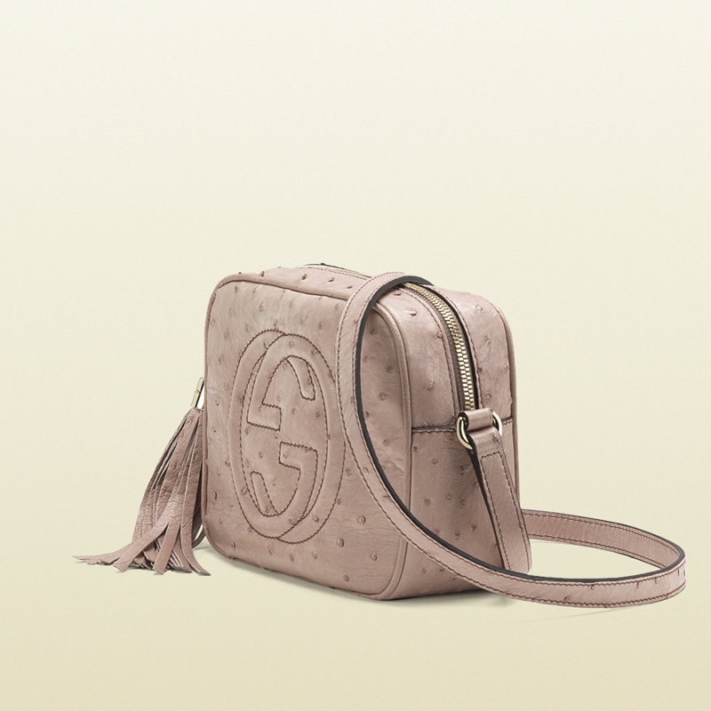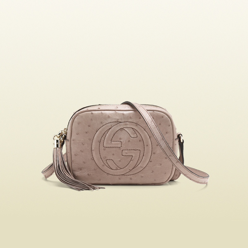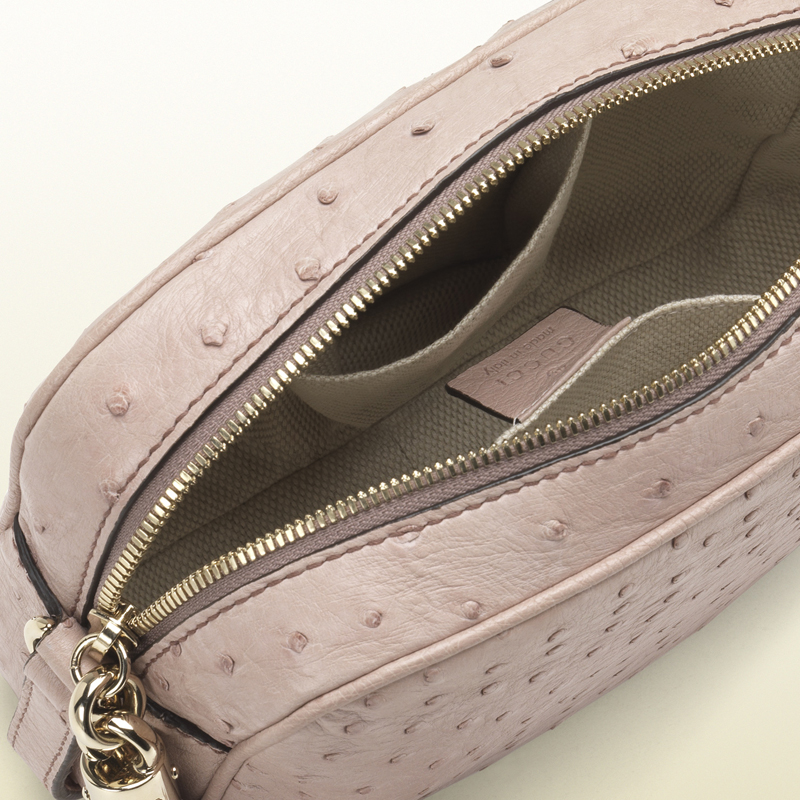 Its name may inspire nights out, but its compact size and go-to ease make this bag a spring essential. The soft light pink hue balances a sophisticated ostrich base.