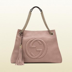 - double chain shoulder straps with leather shoulder pad 7" drop