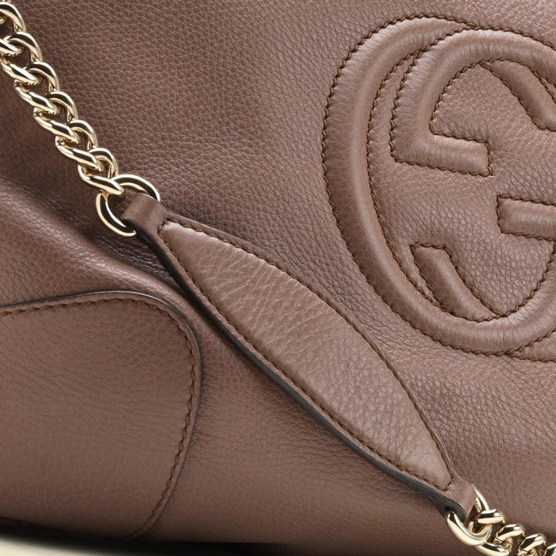 2013 Gucci soho pink tan leather shoulder bag with chain strap